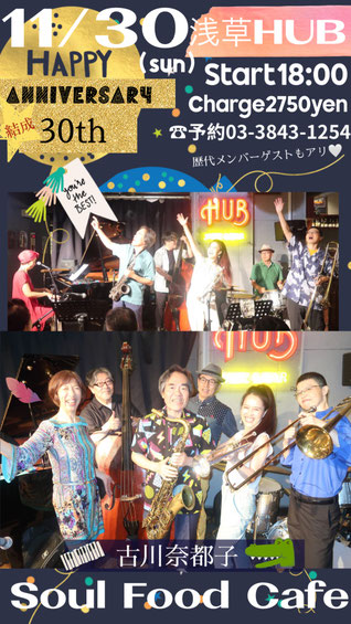2025年11月30日(日)浅草 HUB 古川奈都子SOUL FOOD CAFE ソウルフードカフェ30周年記念ライブ!!