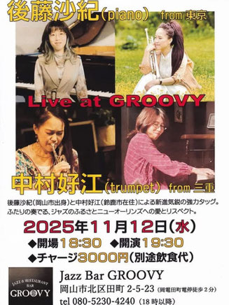 2025年11月12日(水)岡山 Jazz Bar Groovy