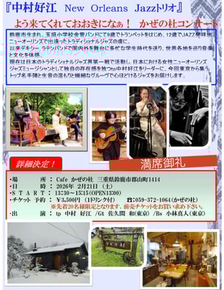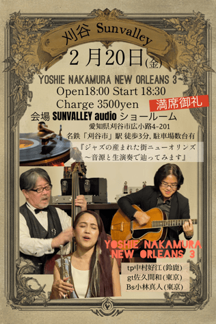 中村好江 New Orleans 3 昼下がりライブ. 満席