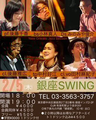 2026年2月5日(木) 銀座SWING 銀座Swing Special trad jazz session