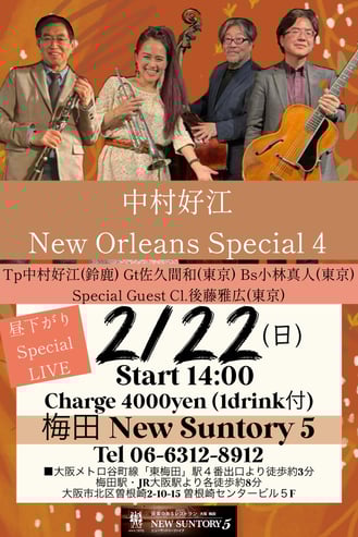 中村好江 New Orleans 3 tp.中村好江 Gt 佐久間 和 (東京) Bs小林真人(東京)