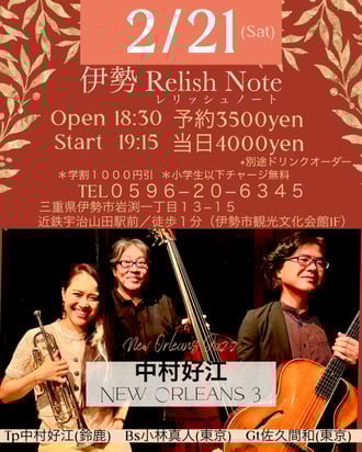 2026年2月21日(土)夜 伊勢レリッシュノート