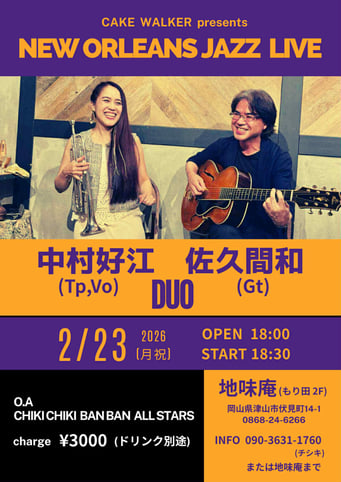 2026年2月23日(祝月)岡山 津山 地味庵 Trad Jazz Duo